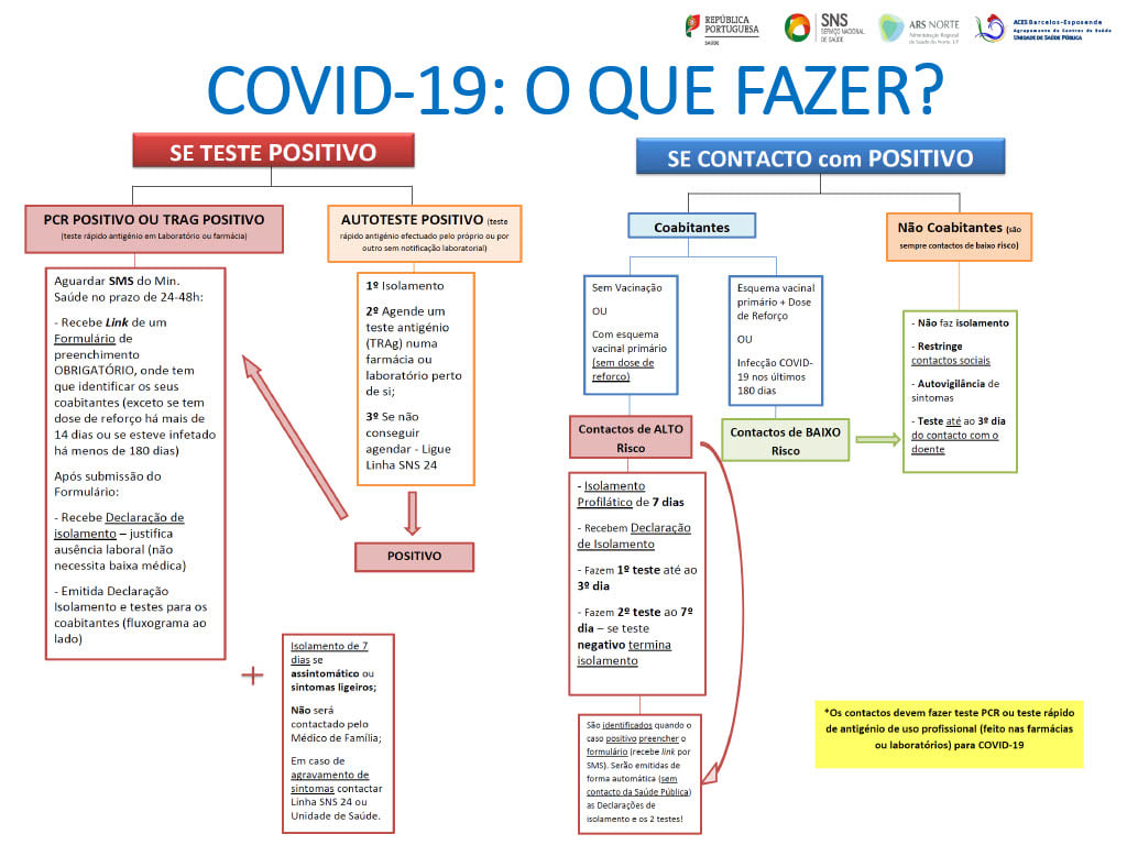 Se está positivo(a) ou teve contacto com alguém positivo(a), siga as instruções do fluxograma.