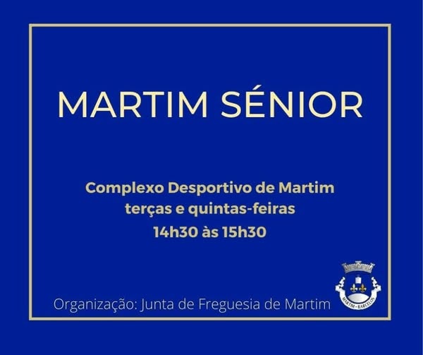 Ver maisO programa Martim Sénior, promovido pela Junta de Freguesia de Martim, será retomado na próxima terça-feira, dia 9 de setembro, no Complexo Desportivo de Martim.